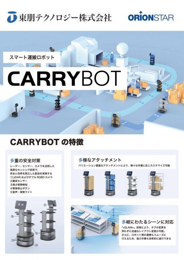 2025/11/04 東朋テクノロジーよりスマート運搬ロボットCarryBotのご紹介 モノを運ぶムダをなくしませんか?搬送用ロボットCarryBot CarryBotはコンパクトで使いやすい自律走行型の搬送ロボットです。 搬送・運搬作業の自動化により省人化を図れます。 最大150kgまで積載が可能で、工場や倉庫内や物流センターでの運搬作業を効率化します。 設置面積は65cm×52cmと非常にコンパクトで、専用アプリケーションに よる簡単操作を実現しており、最短1日での導入が可能です。 詳細はこちらまで